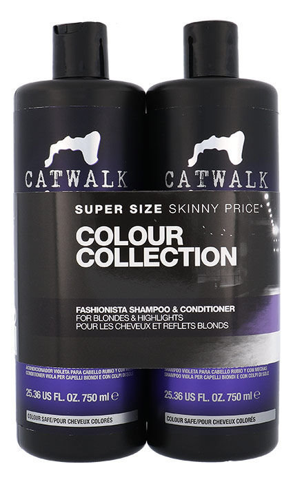 Kazeta pro blond vlasy Tigi Catwalk Colour Collection Duo Kit. Složení kazety: Catwalk Fashionista Violet Shampoo 750ml - Šampon pro blond vlasy Tento jedinečný šampon chrání a vyživuje vlasy. Zanechává vlasy lesklé. Použití: Aplikujte na mokré vlasy, napěňte a poté důkladně opláchněte....