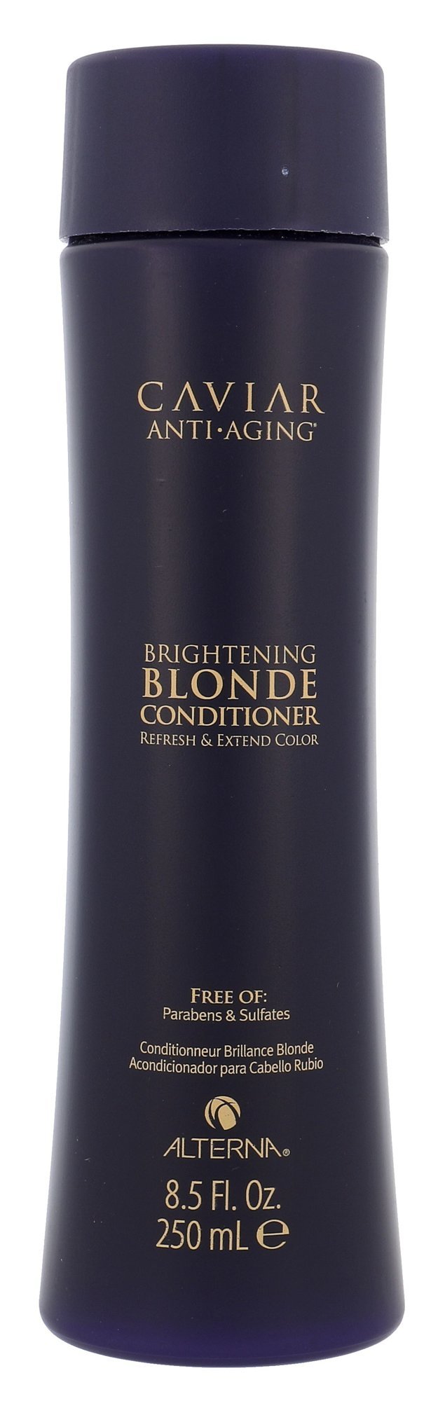 Kondicionér Alterna Caviar Brightening Blonde Conditioner. Kondicionér Alterna Caviar Brightening Blonde Conditioner jemně čistí vlasy a odstraňuje veškeré nečistoty. Složení s citrónem, heřmánkem a medem vlasy vyživuje a posiluje. Dodejte svým blond vlasům zářivou barvu s oslnivým leskem....