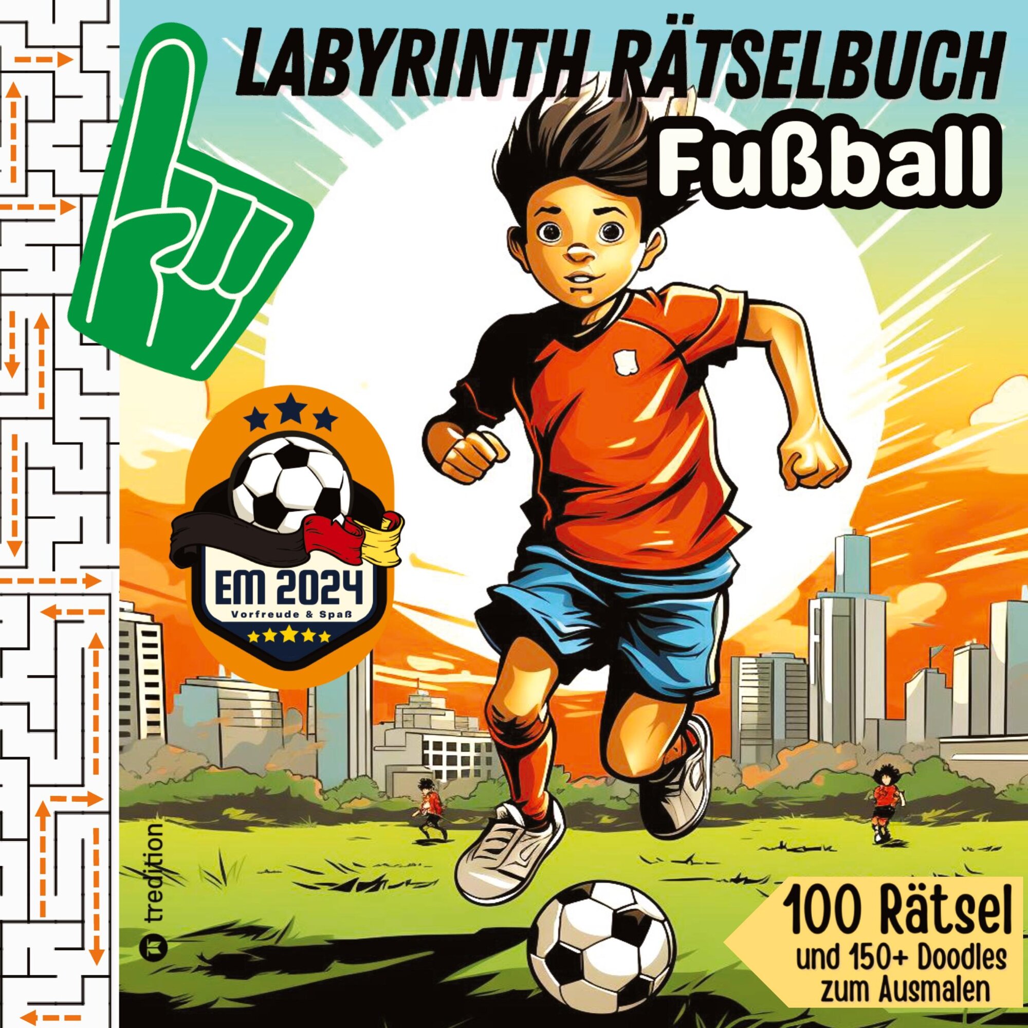Labyrinth Rätselbuch für Kinder Fußball - 100 Puzzles EM 2024 Geschenkbuch Europameisterschaft Fußball (niemiecki)