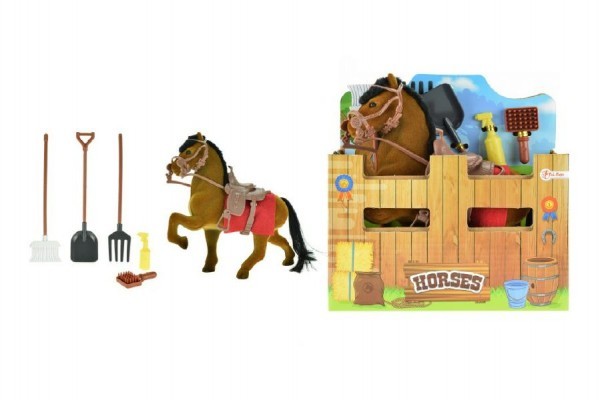 Kůň s doplňky hnědý fliška 15cm v krabičce