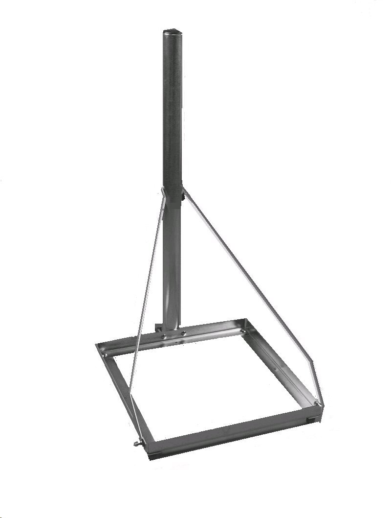 Stožár 1m na rovné plochy střech, teras či balkónu, zatížený dlaždicemi 50x50 cm. Jako zatěž pro základnu se doporučuje betonová dlažba, kterou naleznete pod kódem 47638.
