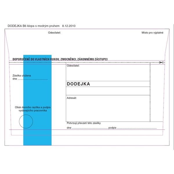Dodejky B6 - modrý pruh, samolepicí, 100 ks
