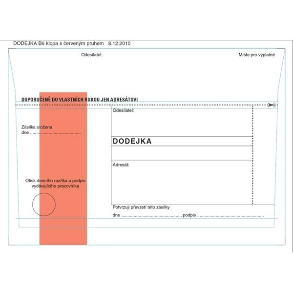 Dodejky B6 - červený pruh, samolepicí, 100 ks