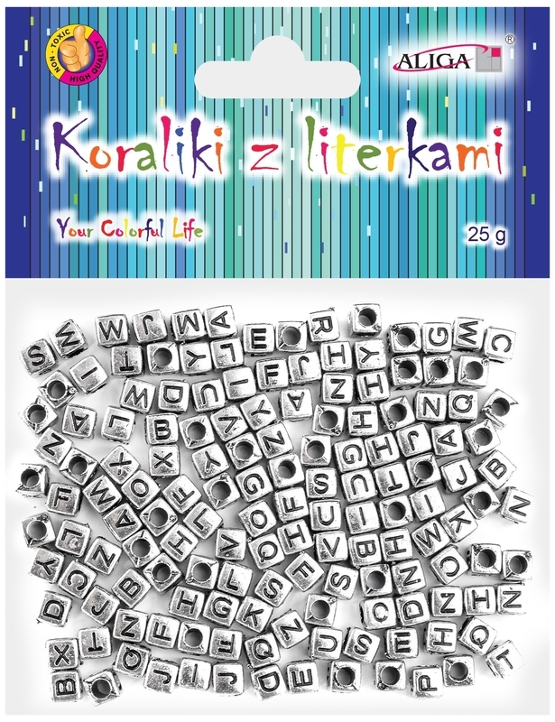 Koraliki metalowe z literkami 6x6mm op.25g PJA-0347., Aliga