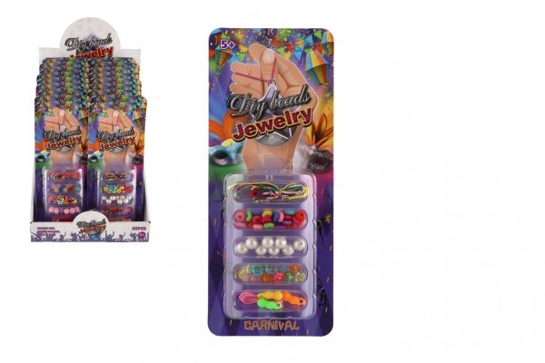 Korálky plastové barevné se šňůrkou na kartě 10x25cm 20ks v boxu