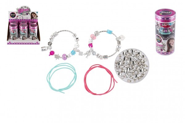 Vytvoř si vlastní náramek. Sada obsahuje navlékací náramky, struny k navlékání a mnoho přívěsků k ozdobení. Malé parádnice tak mohou mít každý den jiné náramky. Komponenty jsou plastové. Rozměr plastového tubusu: 8 x 18 cm Vhodné pro děti od 3 let przeczytaj całość