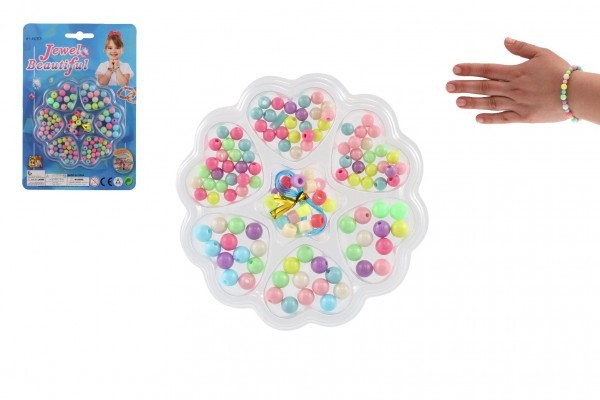 Korálky plastové barevné se šňůrkou na kartě 14x20,5x2cm
