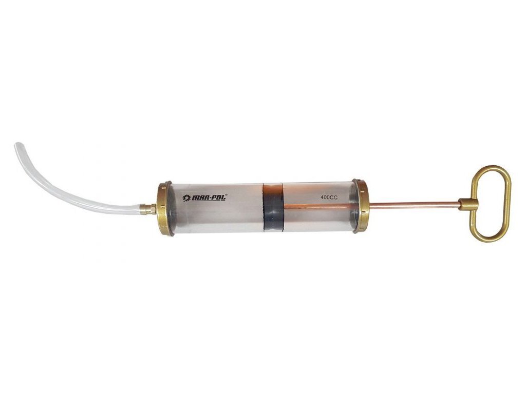 Ruční odsávačka oleje 400ml MAR-POLStříkačka pro vysávání oleje z motoru benzínové sekačky na trávu, snadno a bez rizika úniku oleje.hadička 23cmobjem 400ml przeczytaj całość