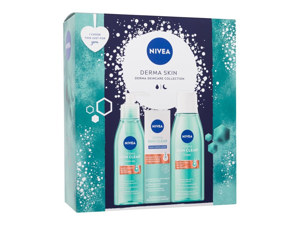 Nivea Derma Skin Clear noční exfoliátor Derma Skin Clear Night Exfoliator 40 ml + čisticí gel Derma Skin Clear Wash Gel 150 ml + pleťová voda Derma Skin Clear Toner 200 ml