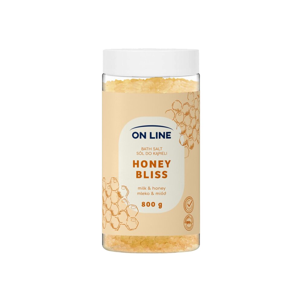 On Line Honey Bliss koupelová sůl obohacená extraktem z medu, mléčnými proteiny a solí z Mrtvého moře.  przeczytaj całość