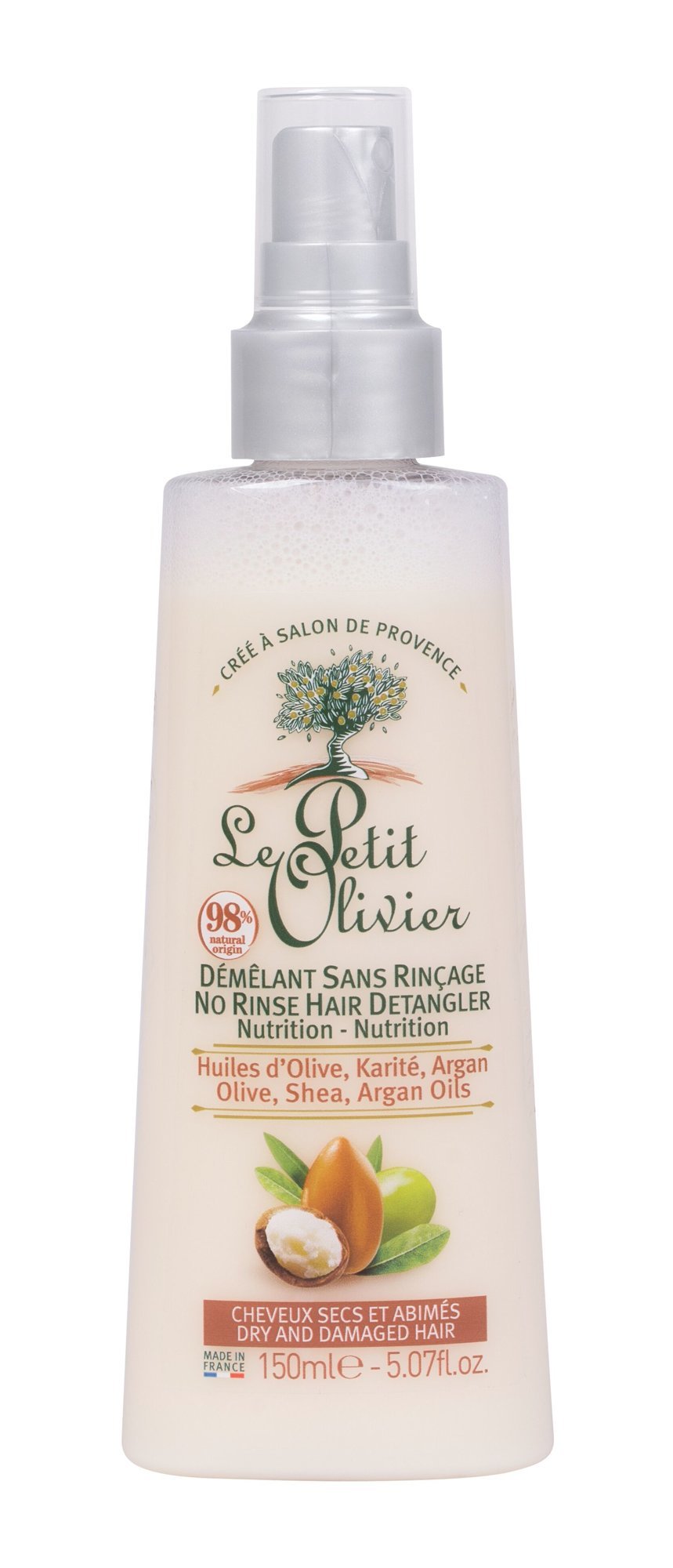 Usnadněte si nepříjemné rozčesávání zamotaných, suchých a poškozených vlasů s přírodním bezoplachovým sprejem Le Petit Olivier Olive, Shea, Argan Oils No Rinse Hair Detangler!