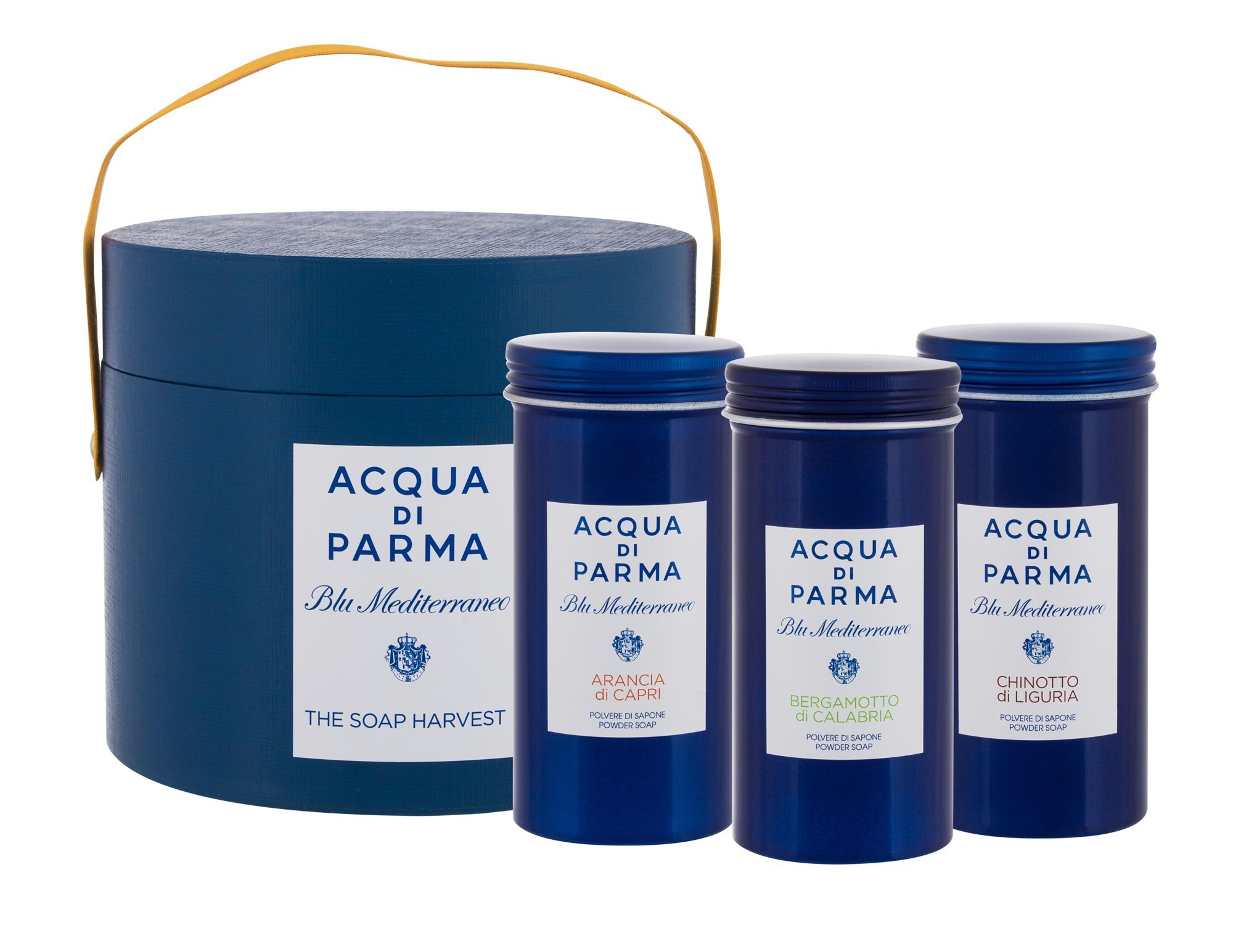 Acqua di Parma Blu Mediterraneo pudrové mýdlo Blu Mediterraneo Arancia di Capri 70 g + pudrové mýdlo Blu Mediterraneo Bergamotto di Calabria 70 g + pudrové mýdlo Blu Mediterraneo Chinotto di Liguria 70 g