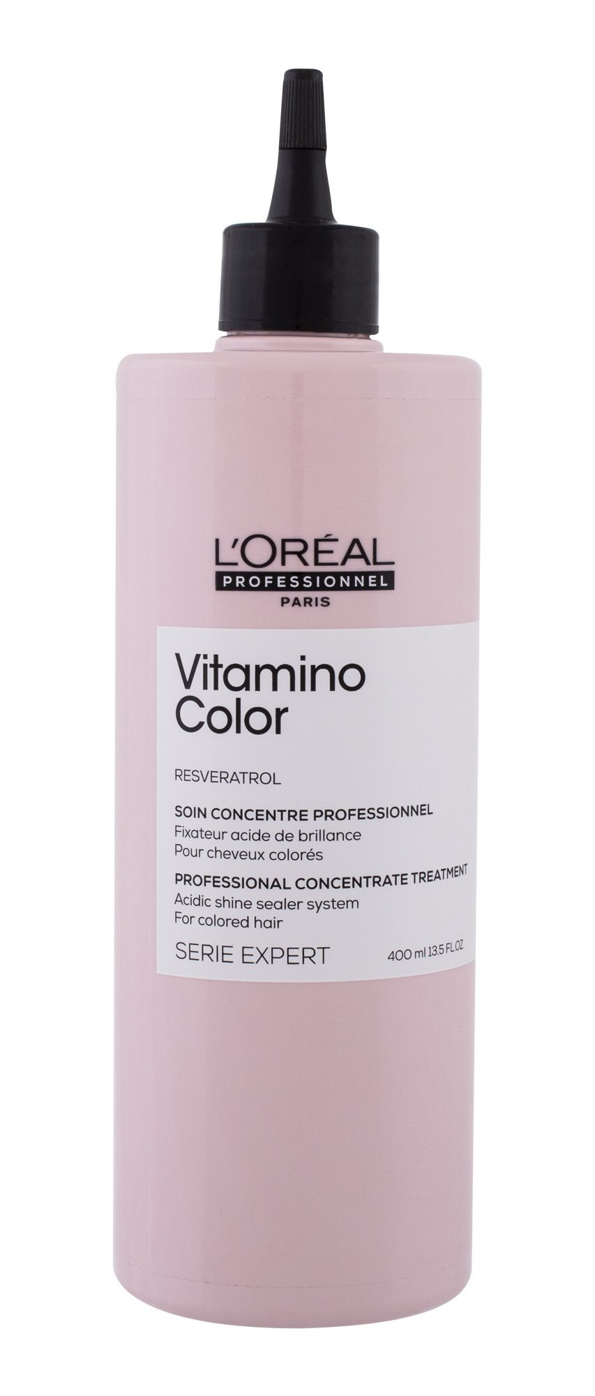 L´Oréal Professionnel Série Expert Vitamino Color Resveratrol Concentrate je oplachová péče v podobě mléka, jenž se při kontaktu s mokrými vlasy mění na úžasnou mléčnou pěnu. Jeho speciální složení chrání barvené vlasy před předčasným blednutím barvy a dodává vlasům lesk.