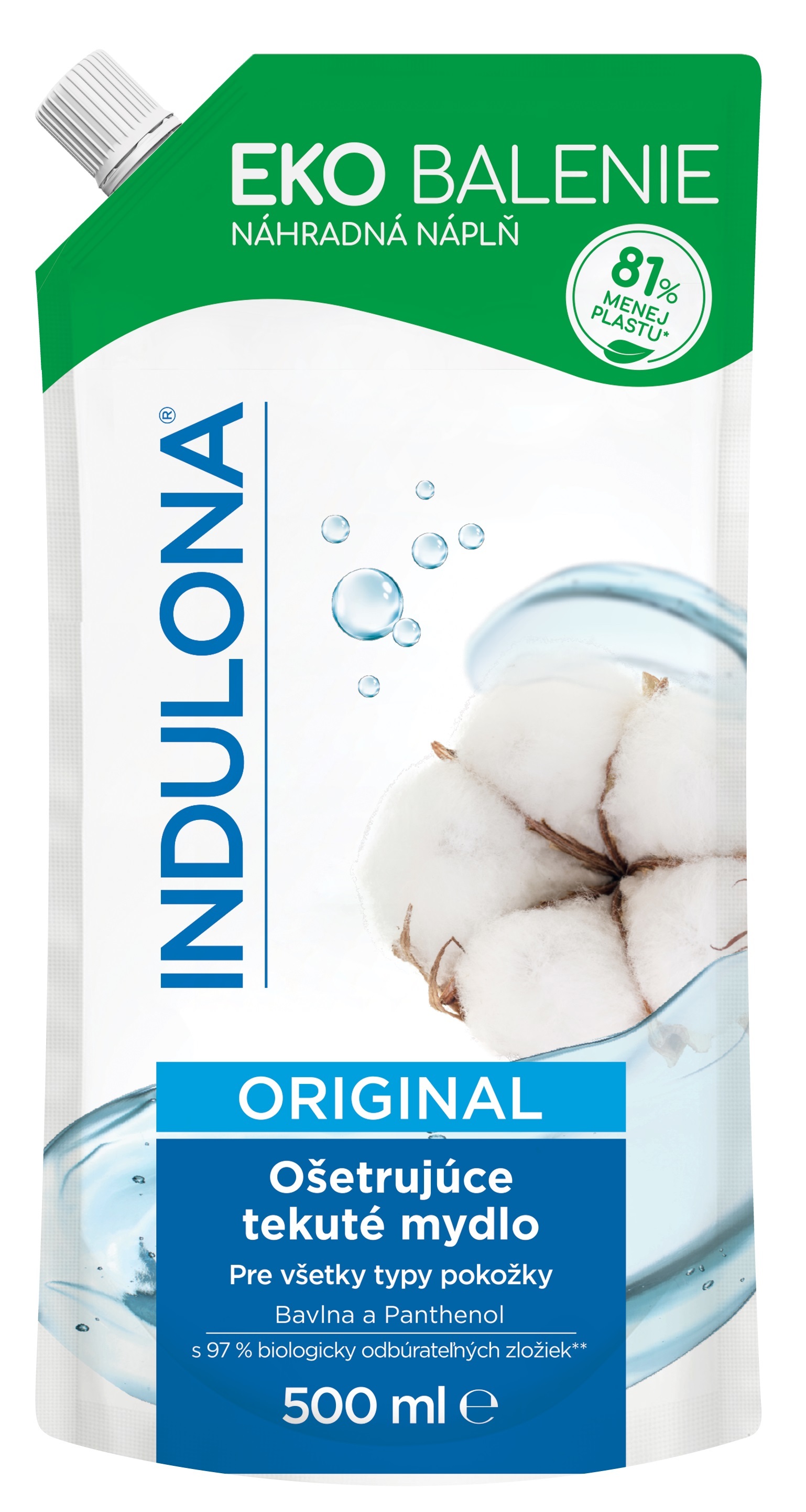 Wkład Indulona ORIGINAL 500 ml. Pielęgnujące płynne mydło z bawełną i pantenolem. Dla wszystkich typów skóry.