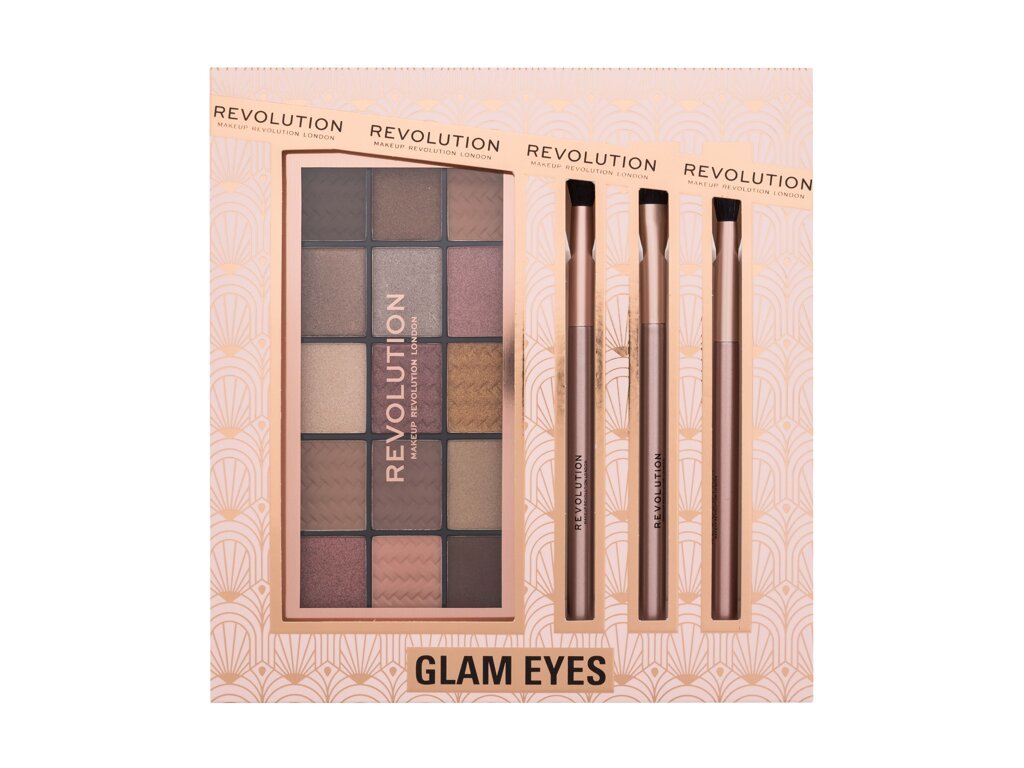 Makeup Revolution London Glam Eyes paletka očních stínů Reloaded Palette 16,5 g + kosmetický štětec 3 ks