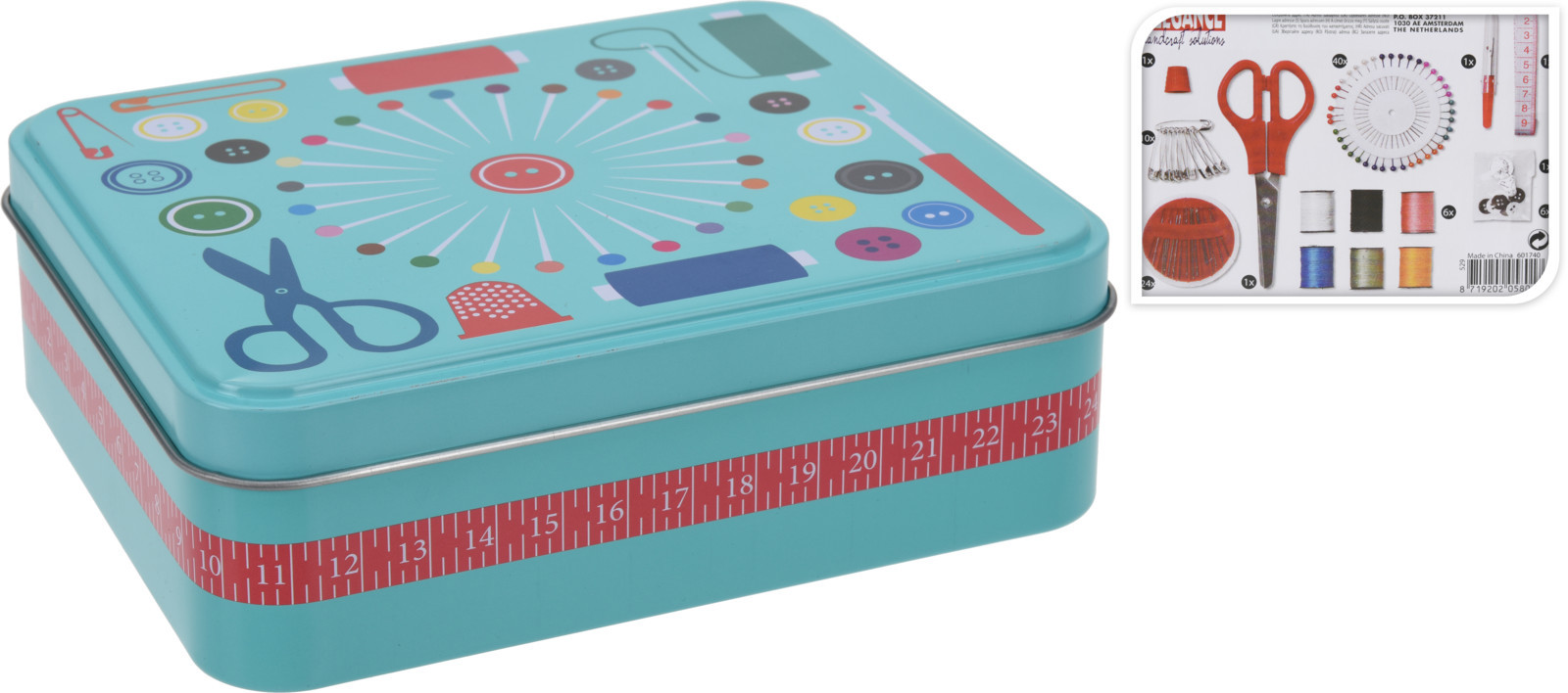 Zestaw do szycia w metalowym pudełku jest praktyczny dla każdego gospodarstwa domowego. Zestaw zawiera 92 elementy, w tym nożyczki, 6 szpulek nici w podstawowych kolorach, igły i szpilki, naparstek, agrafki, miarkę krawiecką, guziki oraz rozpruwacz. przeczytaj całość