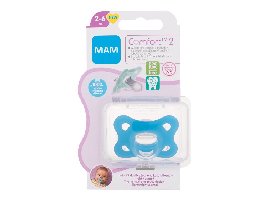MAM Comfort Dudlík 2 Silicone Pacifier 1 ks 2-6m Blue pro děti