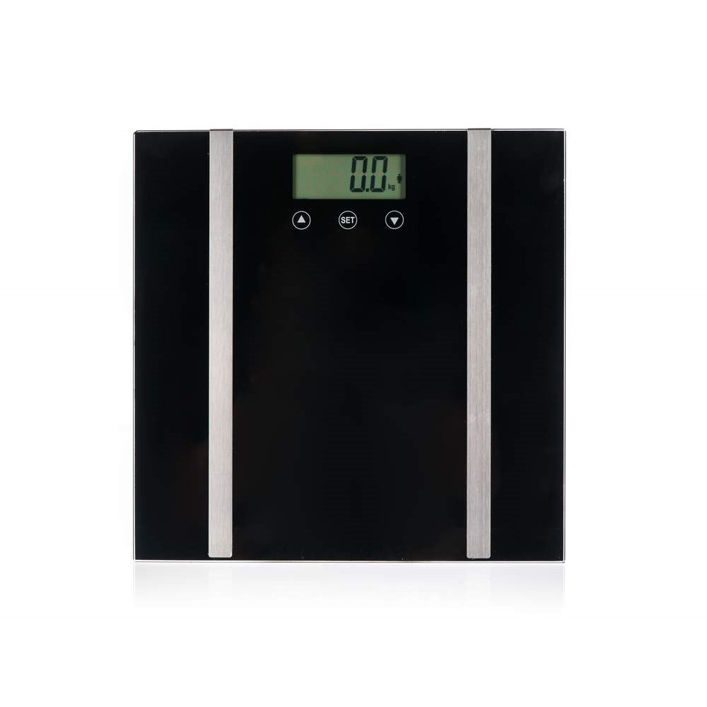 Osobní digitální váha diagnostická PU-003D v černé barvě s LCD displejem a dotykovým ovládáním s možností vážení v kg a lb. Váživost 150 kg, indikátor slabé baterie a přetížení, automatické vypnutí, napájení baterií 1 x CR2032 (není součástí výrobku). Diagnostická váha v elegantním moderním designu s pokročilými funkcemi: pamět pro deset uživatelů, měření podílu tuku, svaloviny, vody, kostí, atd.