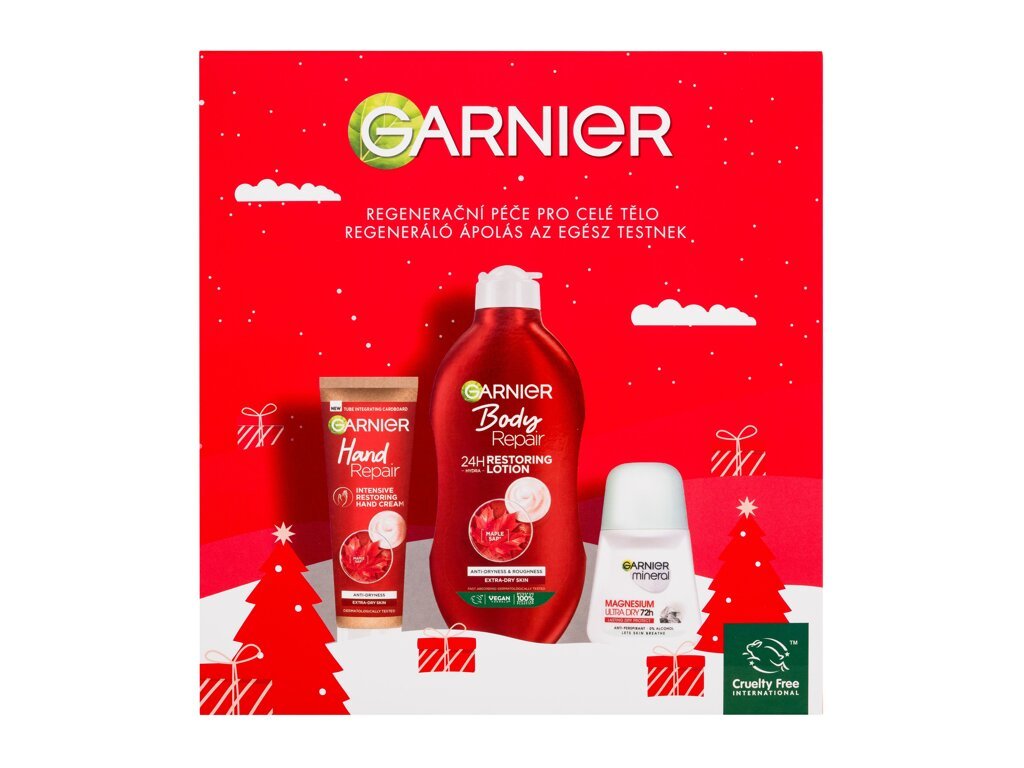 Garnier Body tělové mléko Body Repair Restoring Lotion 400 ml + krém na ruce Hand Repair Intensive Restoring Hand Cream 100 ml + antiperspirant Mineral Magnesium Ultra Dry Antiperspirant Roll-On 50 ml