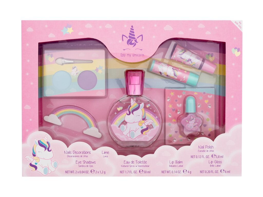 Eau My Unicorn Eau My Unicorn toaletní voda 50 ml + oční stíny 2,4 g + balzám na rty 4 g + lesk na rty 6 ml + lak na nehty 3,8 ml + ozdoby na nehty + pilník na nehty 1 ks