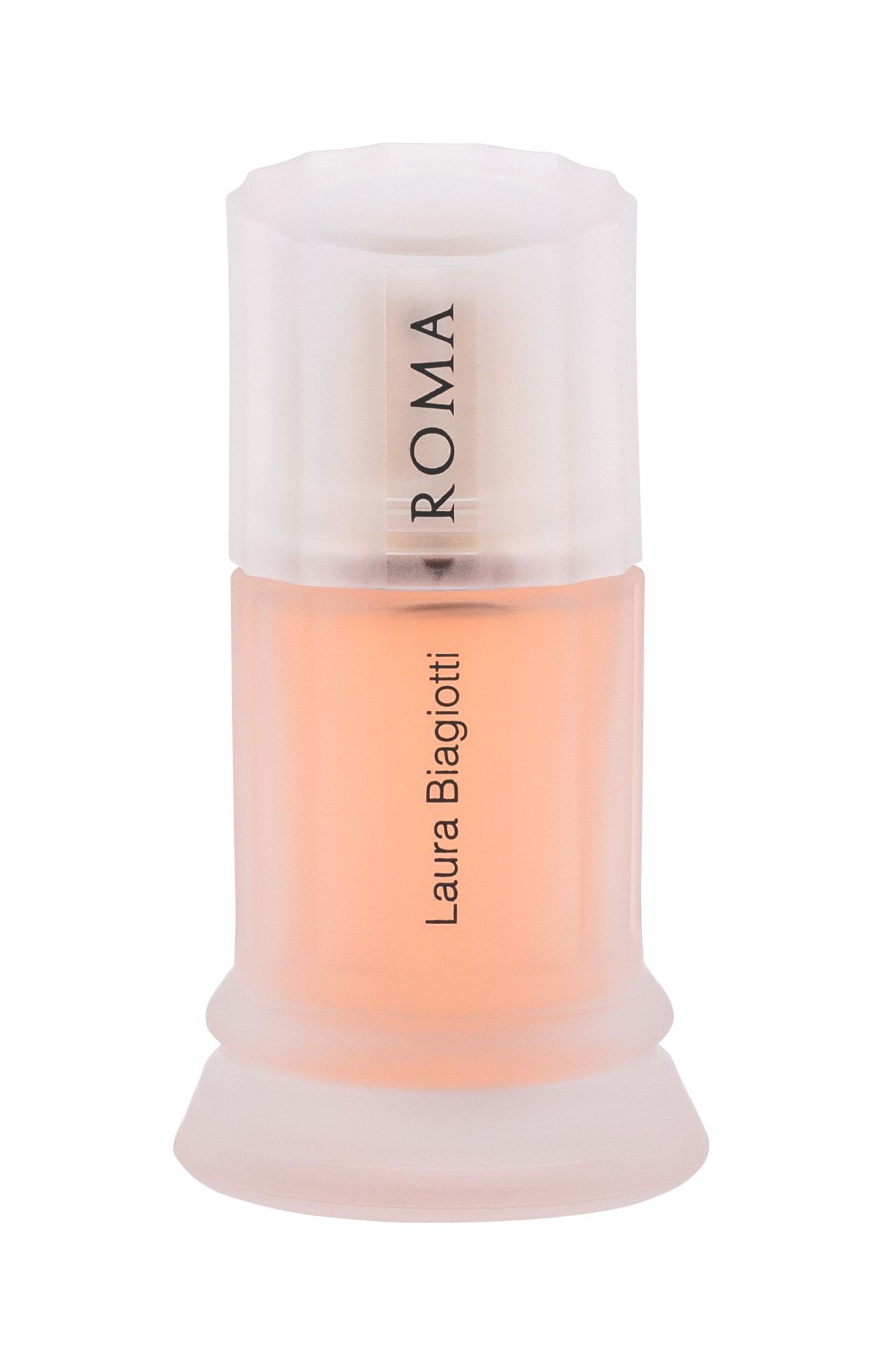 Zapachem **Roma** **Laura Biagiotti** wyraziła miłość do wiecznego miasta Rzym, w którym mieszkała i pracowała od młodości. Roma należy do orientalno-korzenno-przyprawowych zapachów. Flakon ma kształt starych rzymskich kolumn, owiniętych jakby marmurową powłoką w jasnym morelowym kolorze. _Roma_ sprawia interesujące, drzewno-przyprawowe wrażenie, złagodzone dyskretnymi kwiatami. Zapach Roma jest elegancki, nieco romantyczny i bardzo kobiecy.