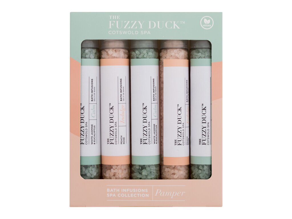 Baylis & Harding The Fuzzy Duck sůl do koupele The Fuzzy Duck Cotswold Spa Calm White Jasmine & Eucalyptus 3 x 65 g + sůl do koupele The Fuzzy Duck Cotswold Spa Indulge Peach Rose 2 x 65 g