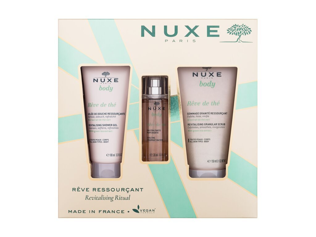NUXE Reve de Thé sprchový gel Reve de Thé Revitalising Shower Gel 100 ml + tělový peeling Reve De Thé Revitalising Granular Scrub 150 ml + tělová voda Reve De Thé Exalting Fragrant Water 30 ml