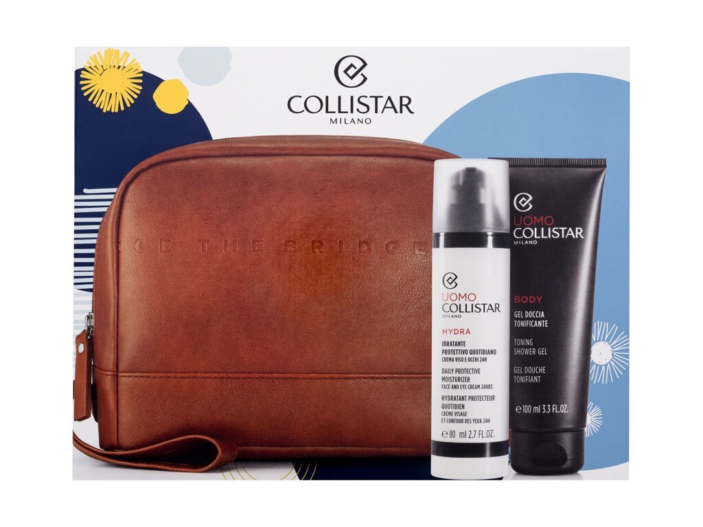 Collistar Uomo denní pleťový krém Uomo Hydra Daily Protective Moisturizer 80 ml + sprchový gel Body Toning Shower Gel 100 ml + kosmetická taštička The Bridge