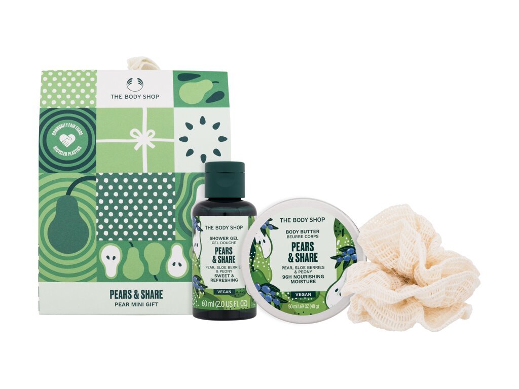 The Body Shop Pears & Share sprchový gel Pears & Share Shower Gel 60 ml + tělové máslo Pears & Share Body Butter 50 ml + žínka