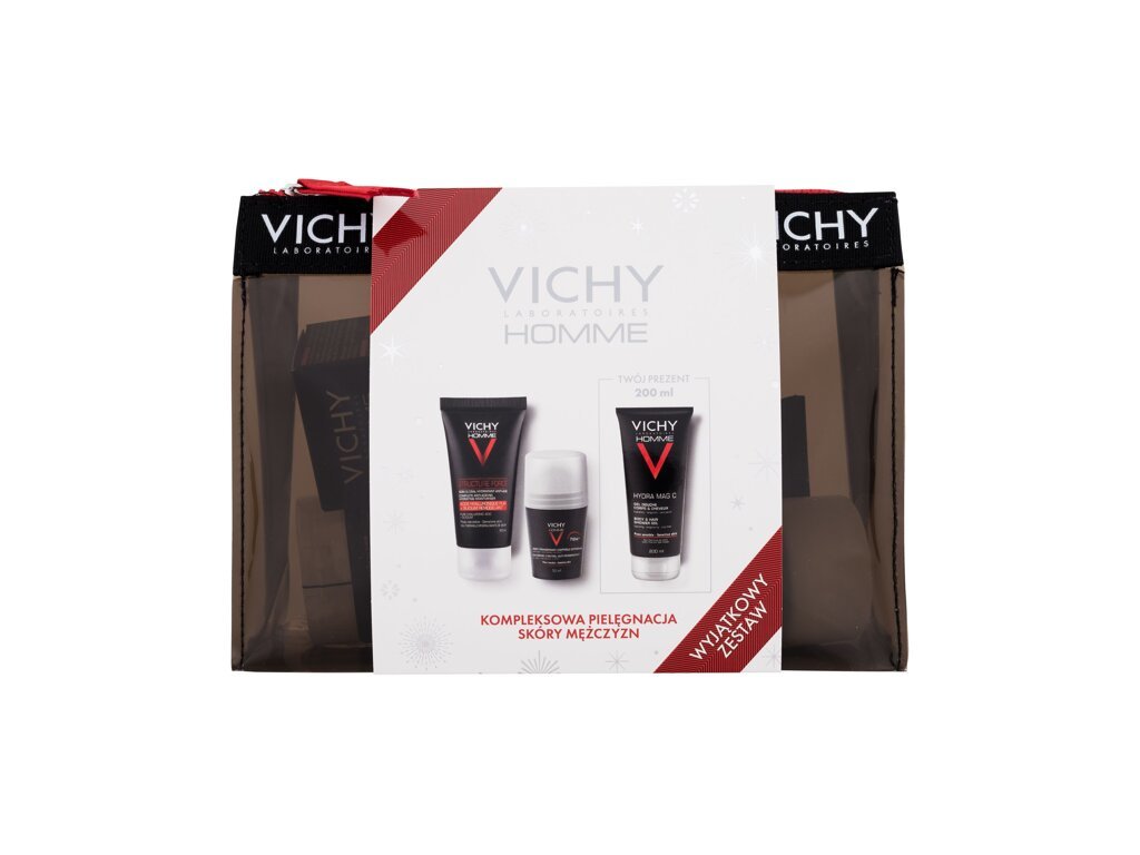 Vichy Homme denní pleťový krém Homme Structure Force Complete Anti-Ageing Hydrating Moisturiser 50 ml + sprchový gel Homme Hydra Mag C Body & Hair Shower Gel 200 ml + antiperspirant Homme Extreme Control Anti-Perspirant 72H 50 ml + kosmetická taštička