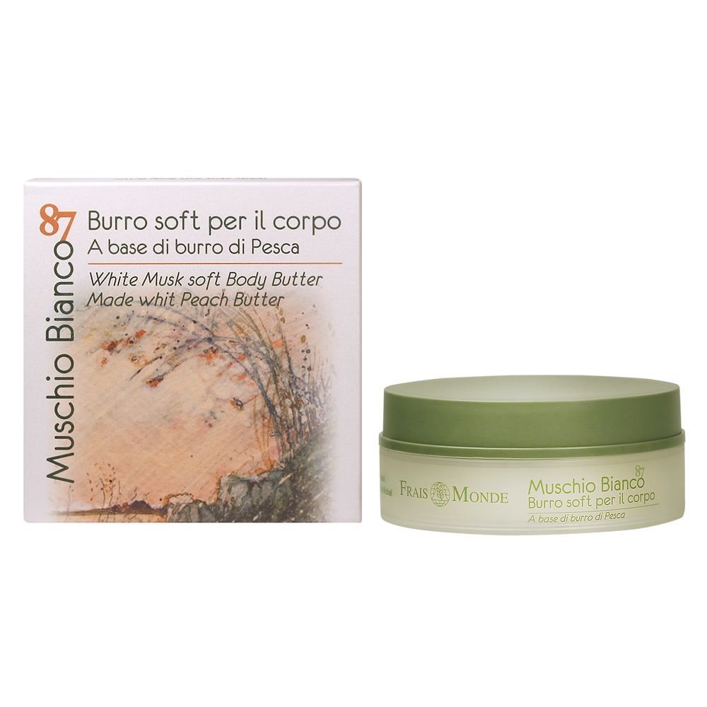 Tělové máslo Frais Monde White Musk. Tělové máslo Frais Monde White Musk hloubkově vyživuje a zvláčňuje pokožku. Pomáhá udržovat optimální úroveň hydratace pokožky díky broskvovému oleji. Celé tělo je po použití sametově hebké a provoněné něžnou vůní bílého pižma. Neobsahuje parabeny, PEG a...