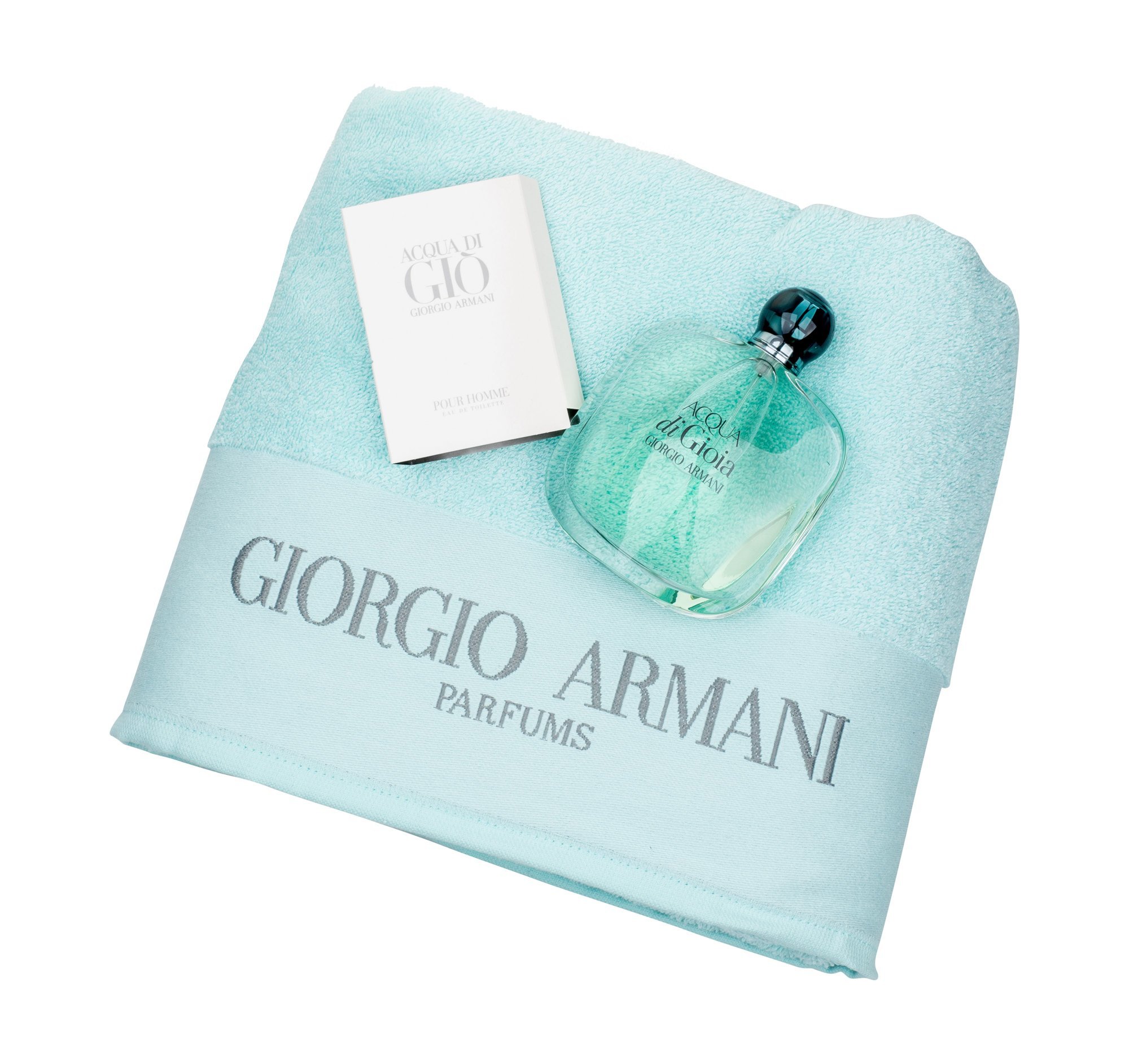 Giorgio Armani Acqua di Gioia parfémovaná voda 100 ml + ručník + toaletní voda Acqua di Gio Men 1,5 ml
