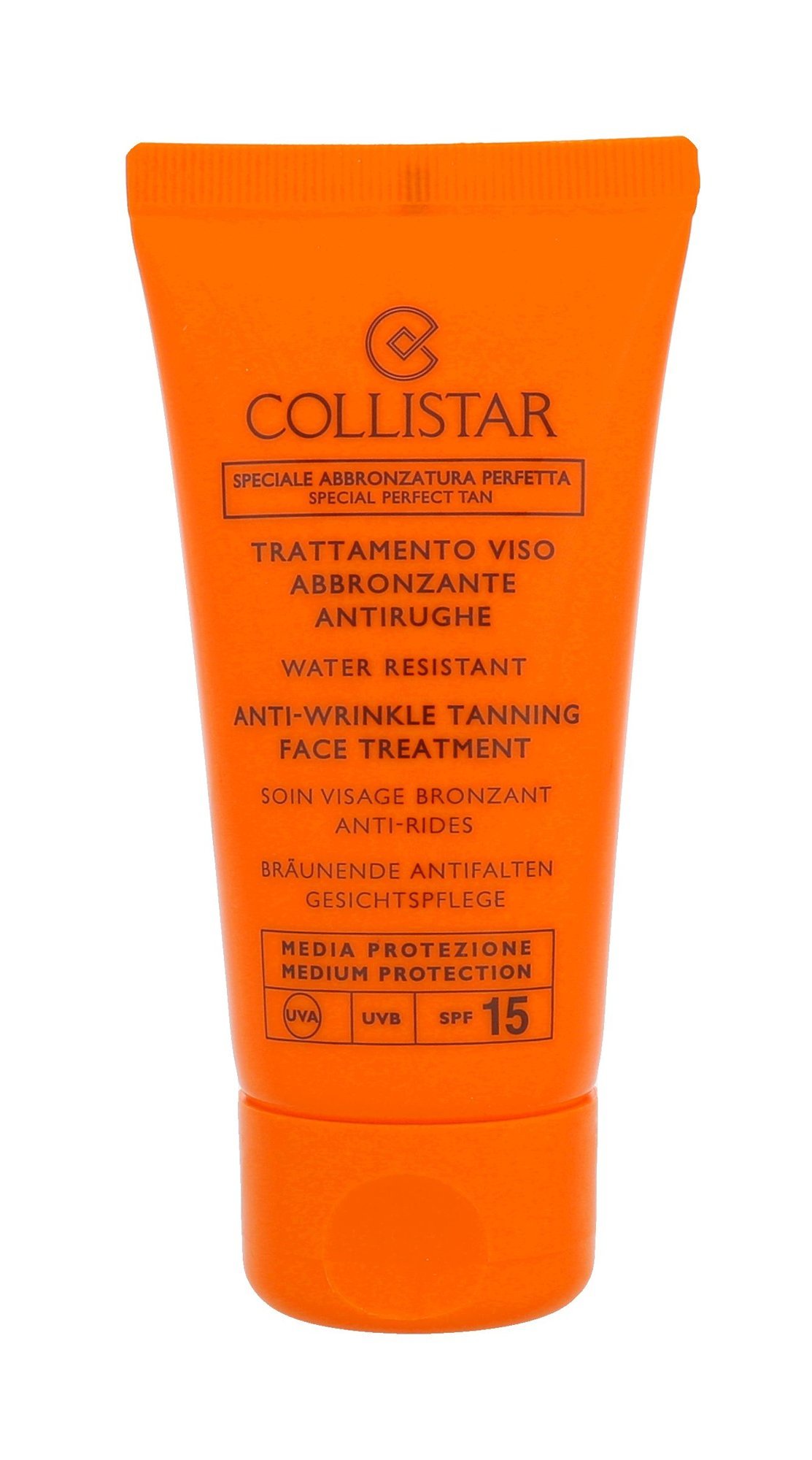 Opalovací krém Collistar Anti-Wrinkle Tanning Face Treatment SPF15 je speciálně určen pro citlivou pleť. Bojuje proti vráskám. Chrání pleť před škodlivými vnějšími vlivy. Ochranný faktor SPF15.