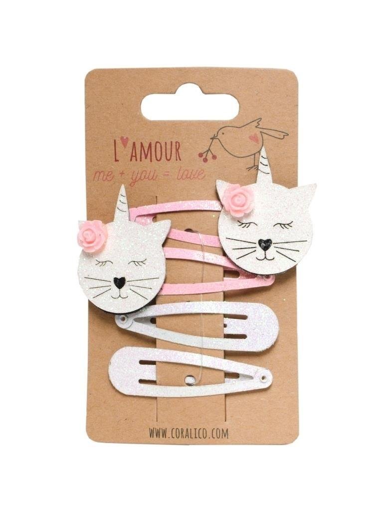 Zestaw spinek z motywem białego kotka. przeczytaj całość