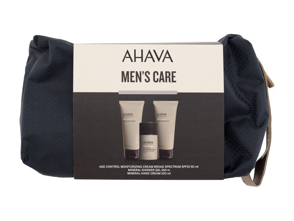AHAVA Men pleťový krém Age Control Moisturizing Cream 50 ml + sprchový gel Mineral Shower Gel 100 ml + krém na ruce Mineral Hand Cream 100 ml + kosmetická taštička