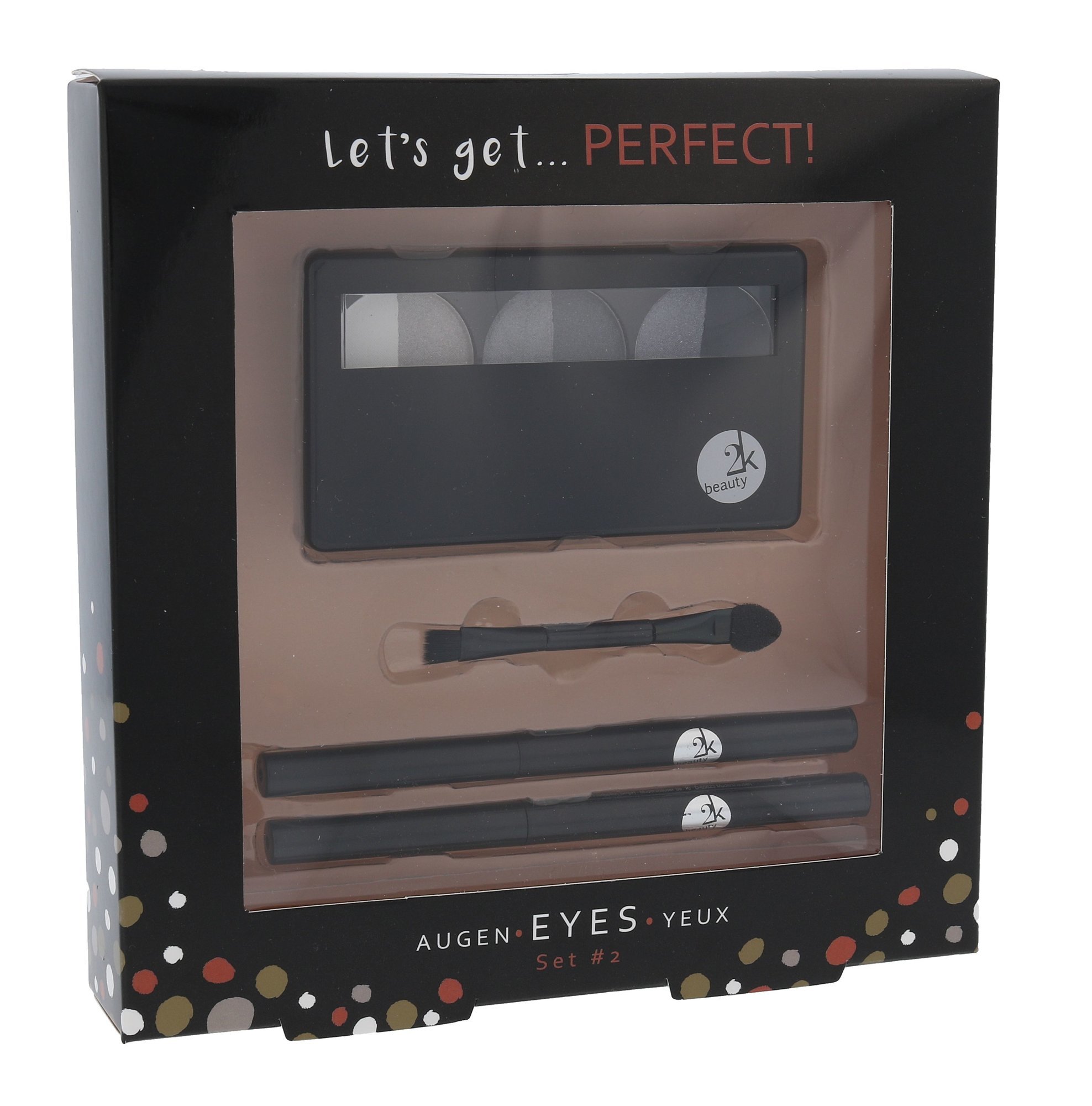 Dekorativní kazeta 2K Let´s Get Perfect!.Složení kazety:Oční stíny 1xTužka na oči 2xAplikátorPoznámka: Vyobrazený odstín může být spíše orientační, záleží na nastavení barev Vašeho monitoru. przeczytaj całość