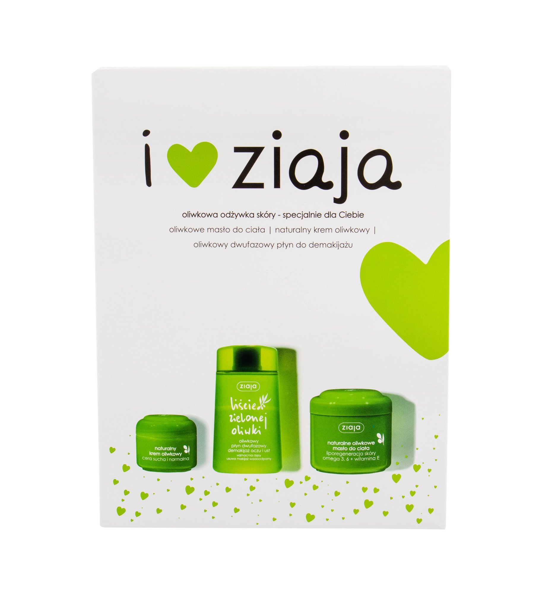 Ziaja Natural Olive denní pleťový krém 50 ml + tělové máslo 200 ml + dvousložkový odličovací přípravek Olive Leaf 120 ml