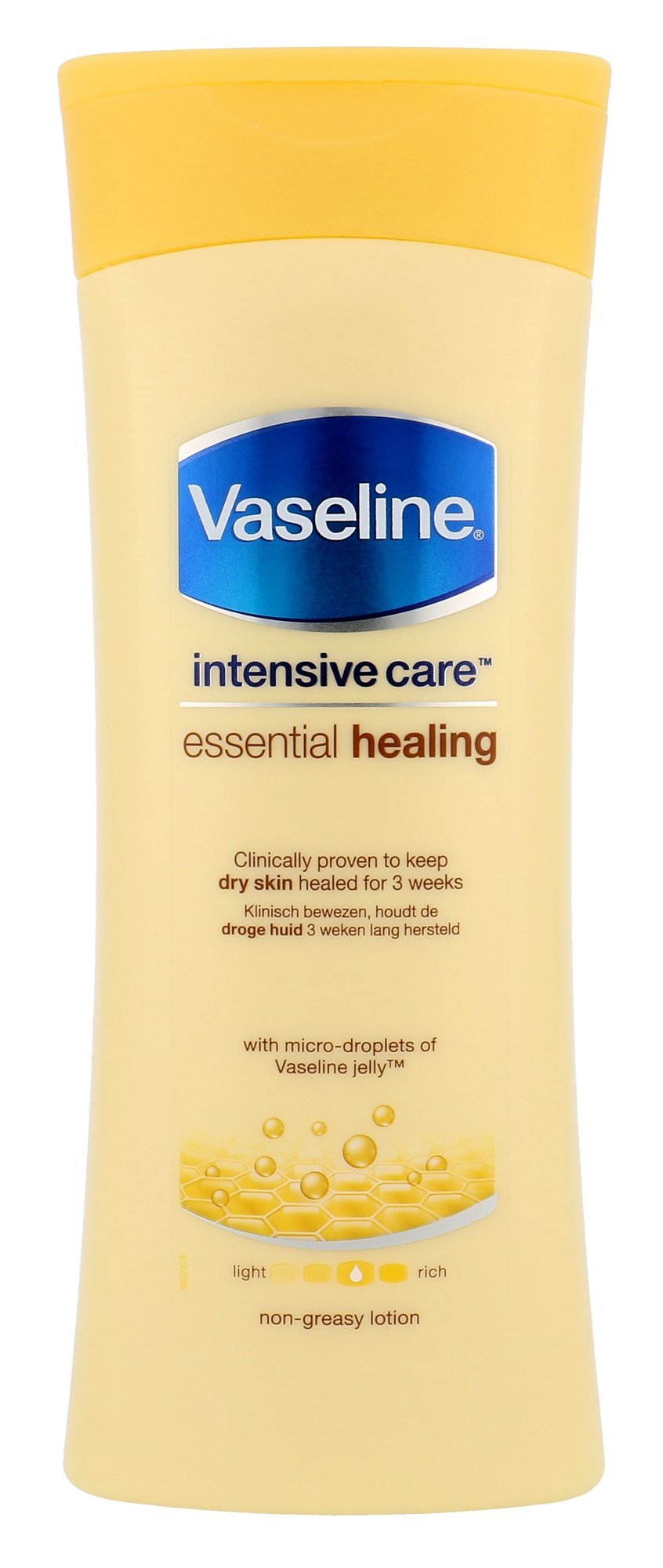 Tělové mléko Vaseline Intensive Care Essential Healing pro hloubkovou hydrataci suché pokožky. Bohaté složení pokožku optimálně hydratuje a zabraňuje jejímu vysušování. Jemná konzistence se ihned vstřebává a nezanechává na pokožce mastný film. Po použití bude Vaše pokožka jemná, hydratovaná a hebká na dotek.