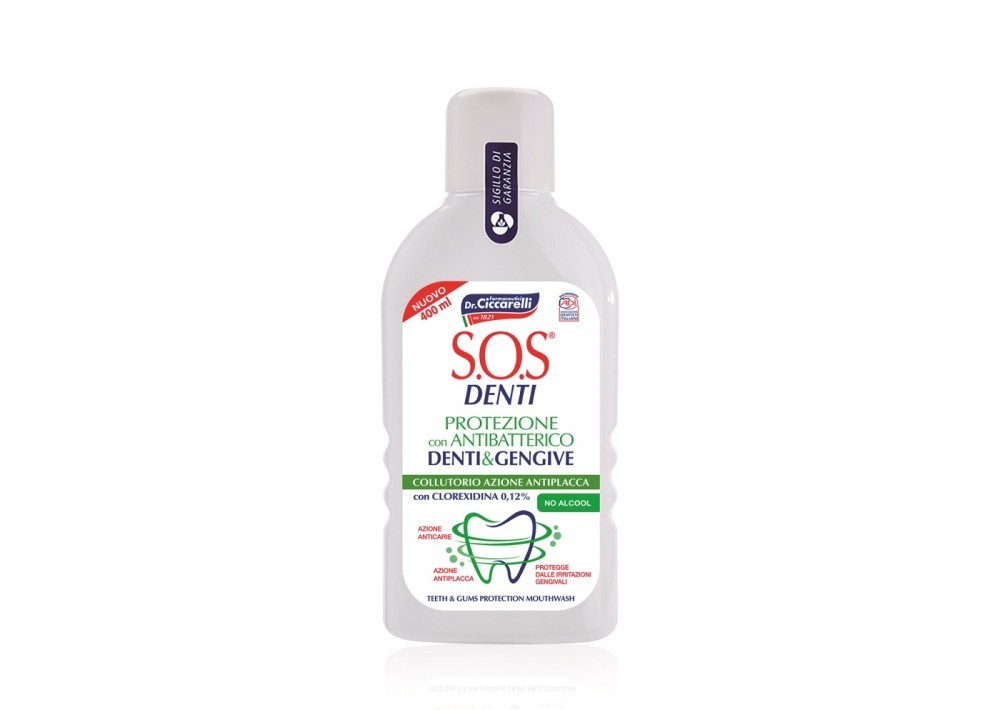 Specjalistyczny i wysoce funkcjonalny płyn do płukania jamy ustnej do stosowania na zalecenie dentysty lub lekarza. Płyn do płukania SOS Teeth Protection z 0,12% chlorheksydyną chroni dziąsła i ogranicza powstawanie płytki bakteryjnej. Wykonuje szybką dezynfekcję i wykazuje działanie antybakteryjne. Wskazany wraz z płynem do płukania dla osób z protezami, aparatami ortodontycznymi, z chorobą przyzębia i podrażnionymi dziąsłami lub poddawanych zabiegom chirurgii stomatologicznej. CHLORHEXIDINE 0,12% jest składnikiem o działaniu antybakteryjnym stosowanym w higienie jamy ustnej. Dzięki swojej zdolności do długotrwałego wiązania się z dziąsłami i szkliwem zębowym, jest w stanie wywołać szybkie działanie dezynfekujące i antybakteryjne przed i po jakimkolwiek leczeniu stomatologicznym.