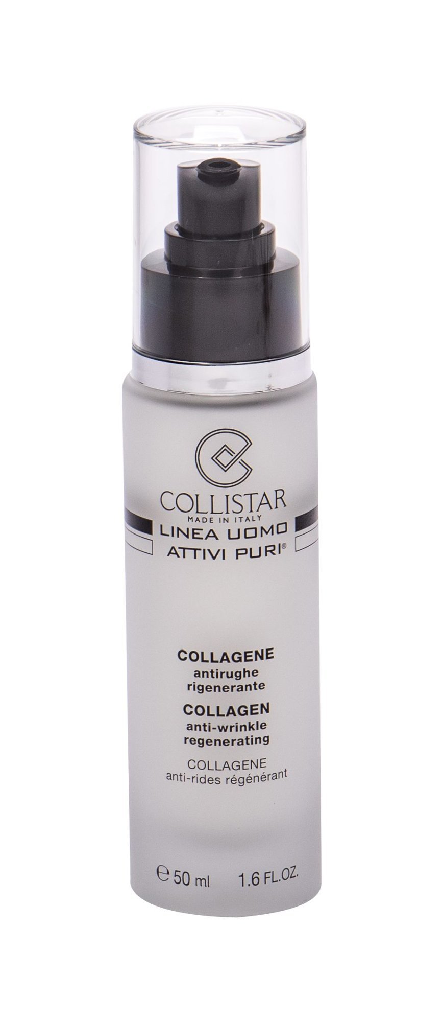 Kolagenové sérum Collistar Linea Uomo Attivi Puri Collagen vytváří přirozenou ochrannou bariéru proti škodlivým vnějším vlivům, které mohou způsobovat stárnutí pleti a tvorbu vrásek. Zpevňuje pokožku, regeneruje tkáň a snižuje tvorbu vrásek.