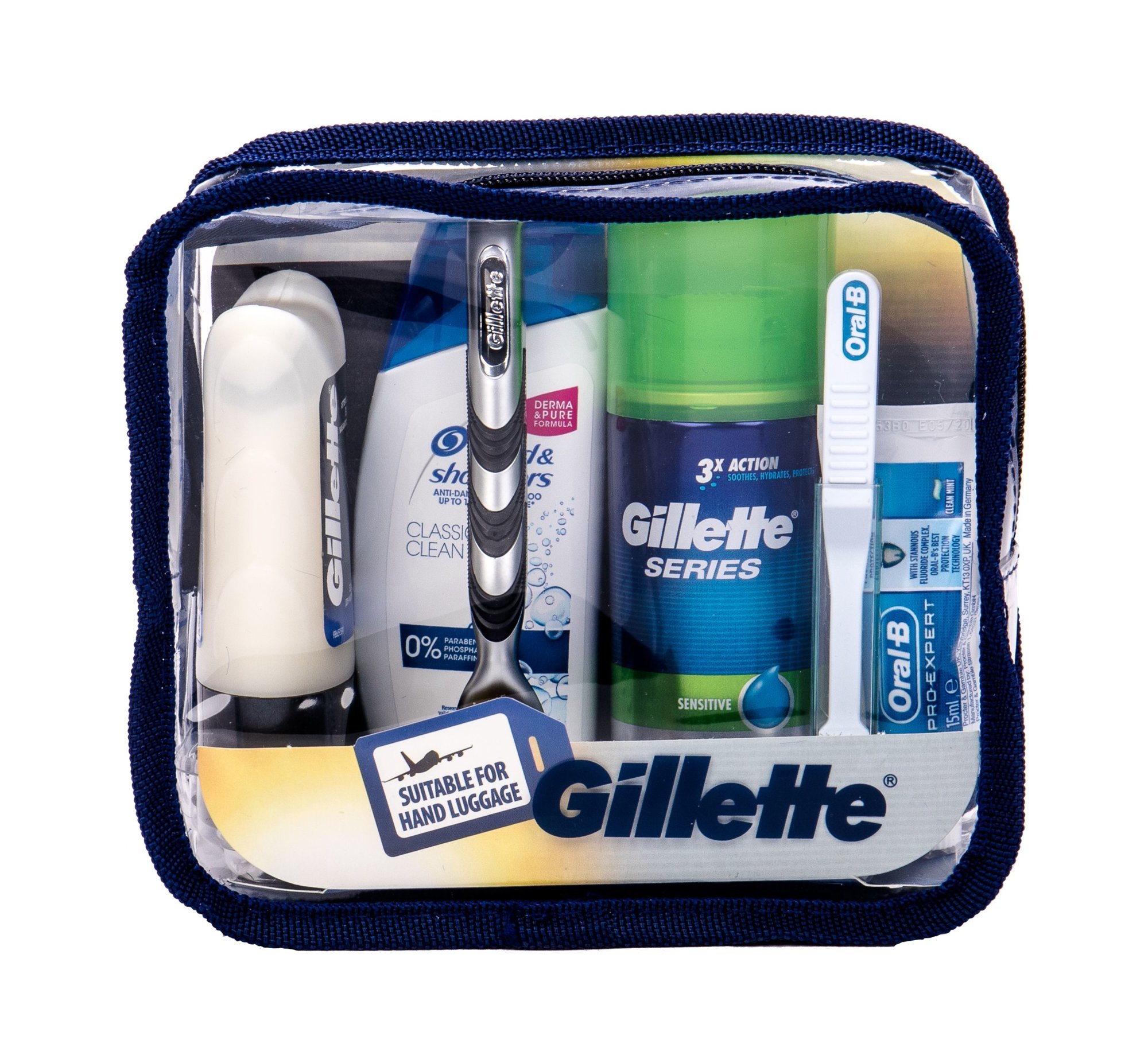 Gillette Mach3 holicí strojek s jednou hlavicí 1 ks + pěna na holení 75 ml + balzám po holení 75 ml + šampon 90 ml + zubní pasta 15 ml + zubní kartáček 1 ks