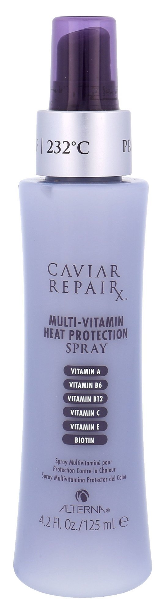 Sprej Alterna Caviar Repairx Multi-Vitamin Heat Protection Spray regeneruje a opravuje poškozené vlasy. Chrání vlasy před vysokými teplotami při fénování nebo žehlení. Posiluje vlasy a dodává jim oslnivý lesk.