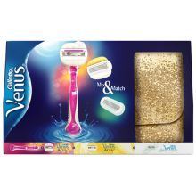Venus & Olay Pink Set - Dárková sada pro ženy obsahuje1 ks Gillette Venus Pink - holicí strojek + mix 3 náhradních hlavic ( Embrace, ProSkin Sensitive, Venus & Olay )- holicí strojek Gillette Venus Pink navržen s láskou k hladkým nohám a vášní pro péči o pokožku- ergonomický tvar s příjemným...