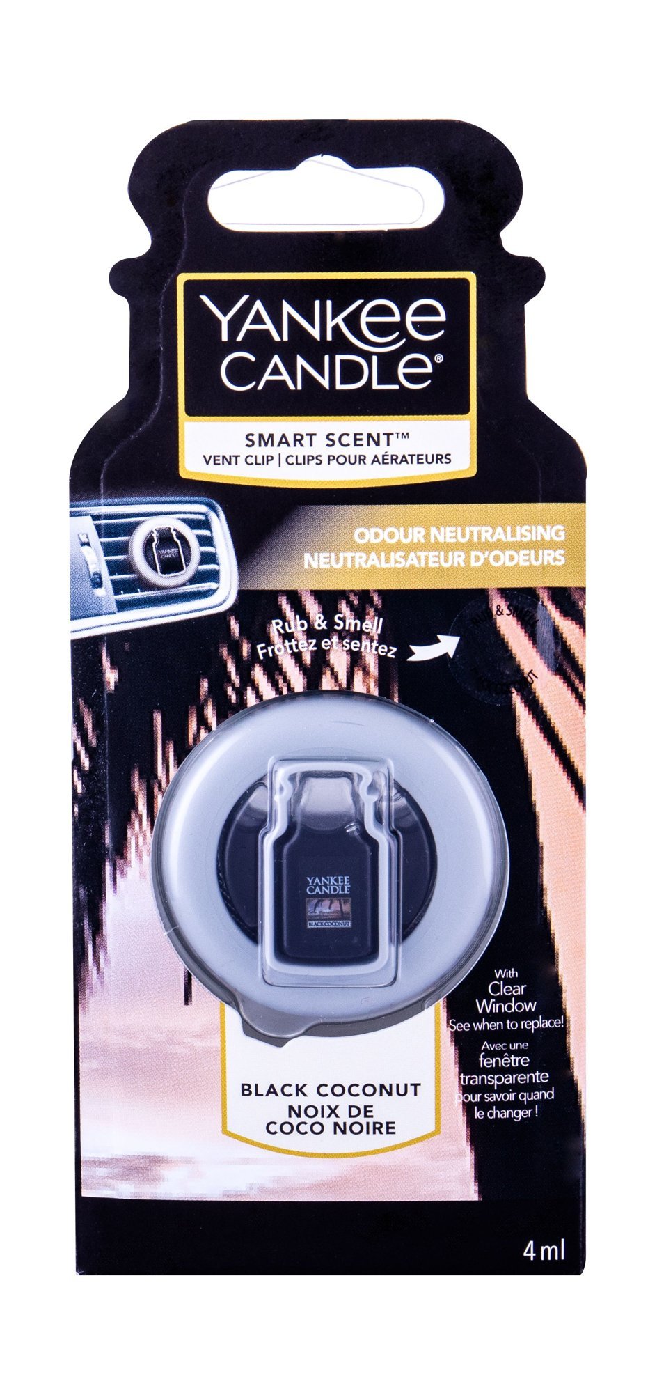 Provoňte své auto a eliminujte pachy s vůní do auta Yankee Candle Black Coconut ve formě clipu do ventilace.