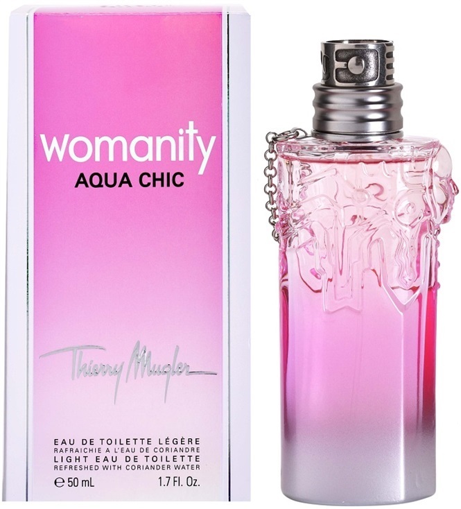 Všechny vůně jsou označeny Aqua Chic. Womanity je v roce 2013 uvedena poprvé s dovětkem Aqua Chic. x000D Thierry Mugler Womanity Aqua Chic 2013 je šumivou a energickou verzí originálu. Vůně si zachovává pikantní nóty, které jsou obohaceny o čerstvý koriandr, který přidává vůni na provokativnosti. przeczytaj całość