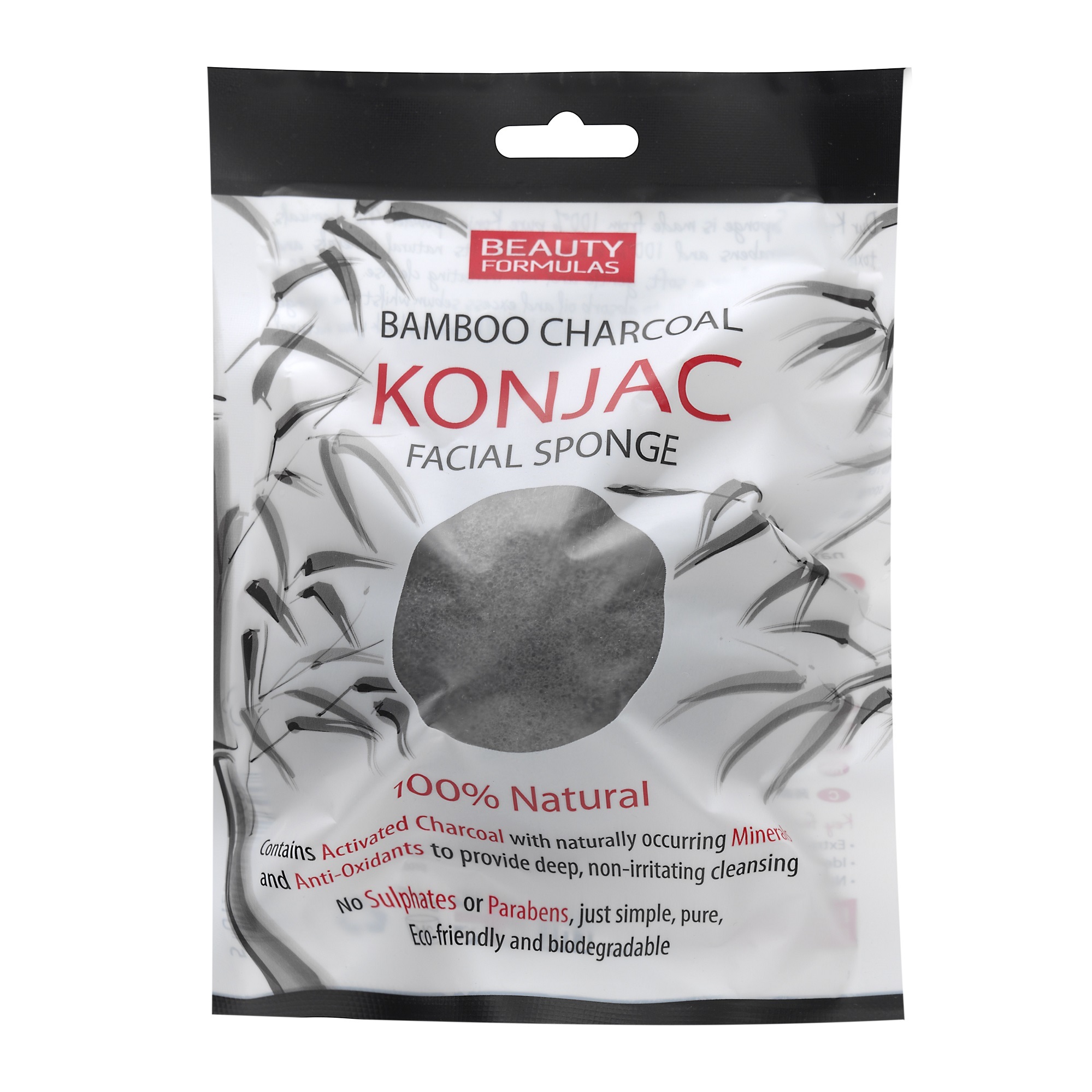 Čistící houbička Beauty Formulas Bamboo Charcoal Konjac Facial Sponge s aktivním bambusovým uhlím důkladně čistí pleť.