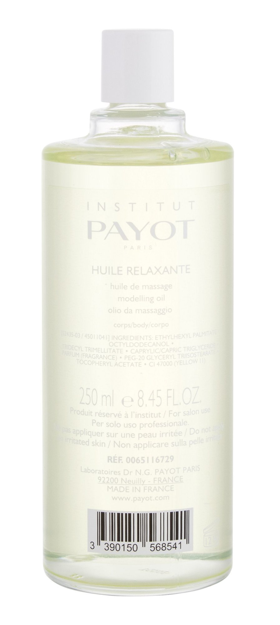 Profesionální masážní olej PAYOT Huile Enveloppante s bohatou olejovou texturou se při kontaktu s vodou transformuje na krém.