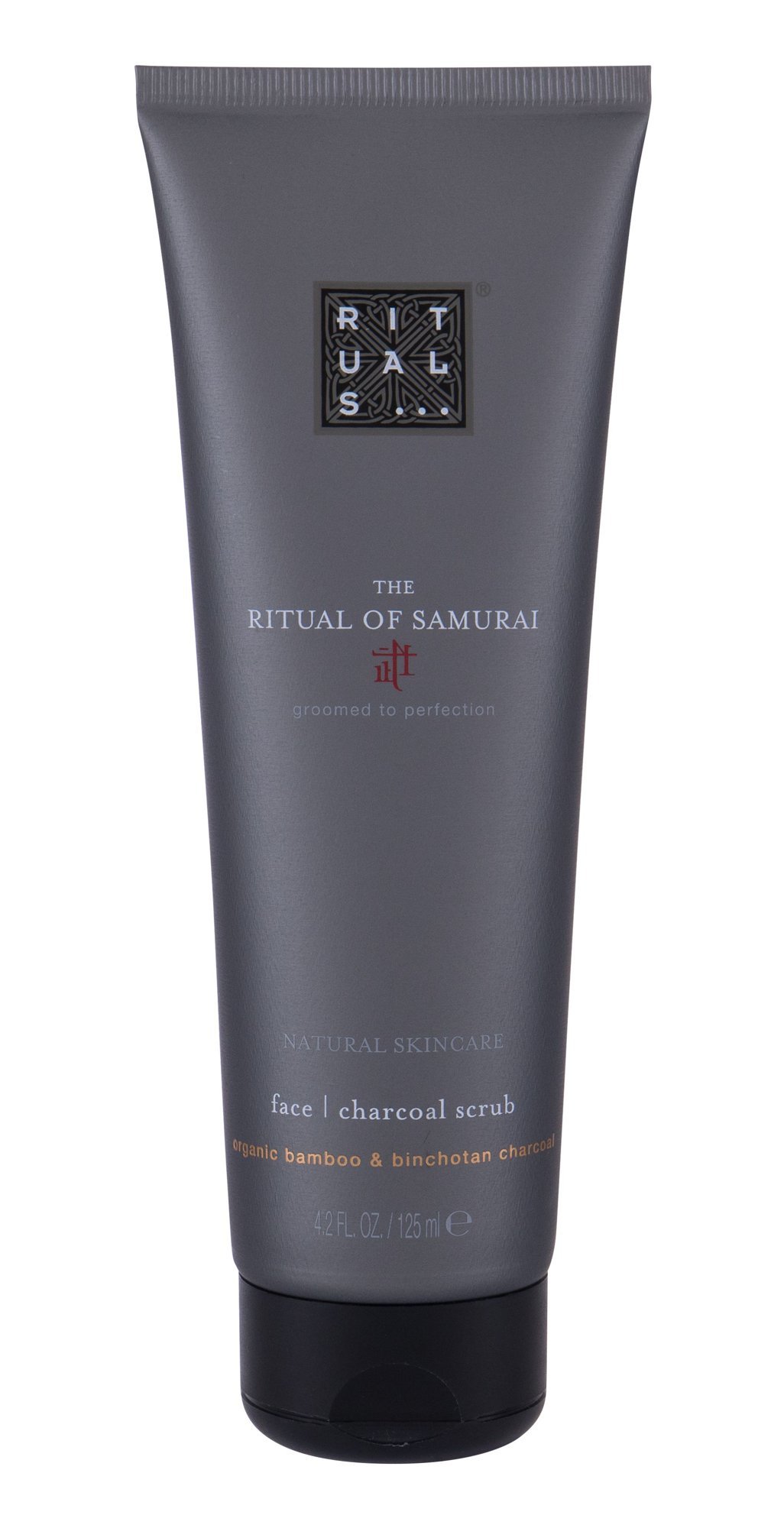 Pleťový peeling The Rituals of Samurai Face Charcoal Scrub obsahuje částečky dřevěného uhlí, díky nimž dochází k šetrnému odstranění odumřelých kožních buněk a nečistot.