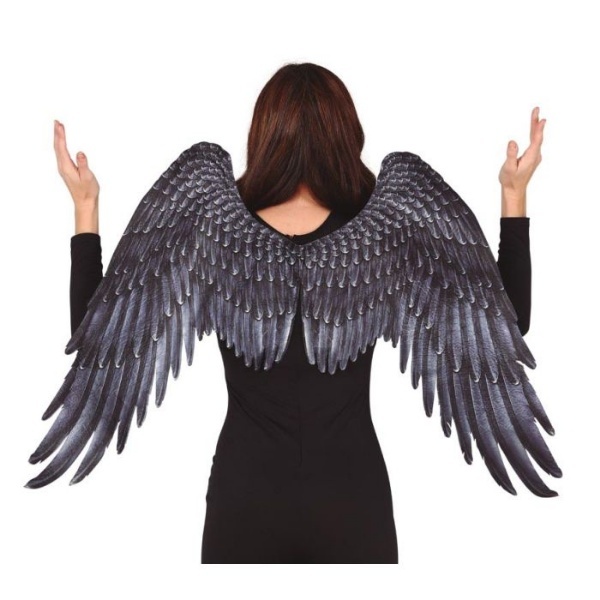 Czarne skrzydła anioła - materiałowe 100 x 70 cm. W luksusowym wykonaniu. Niezbędny dodatek do kostiumu anioła śmierci na Halloween, karnawał lub tematyczną imprezę. Skrzydła anioła zostały wykonane z wysokiej jakości tekstyliów, bez brokatu, nie strzępią się i wyglądają bardzo realistycznie. Skrzydła łatwo zakłada się na ramiona za pomocą przyszytej gumki. Mają większe wymiary, dlatego są raczej odpowiednie dla dorosłych. Rozmiar: 100 x 70 cm Materiał: tekstylia Opakowanie: 1 szt.