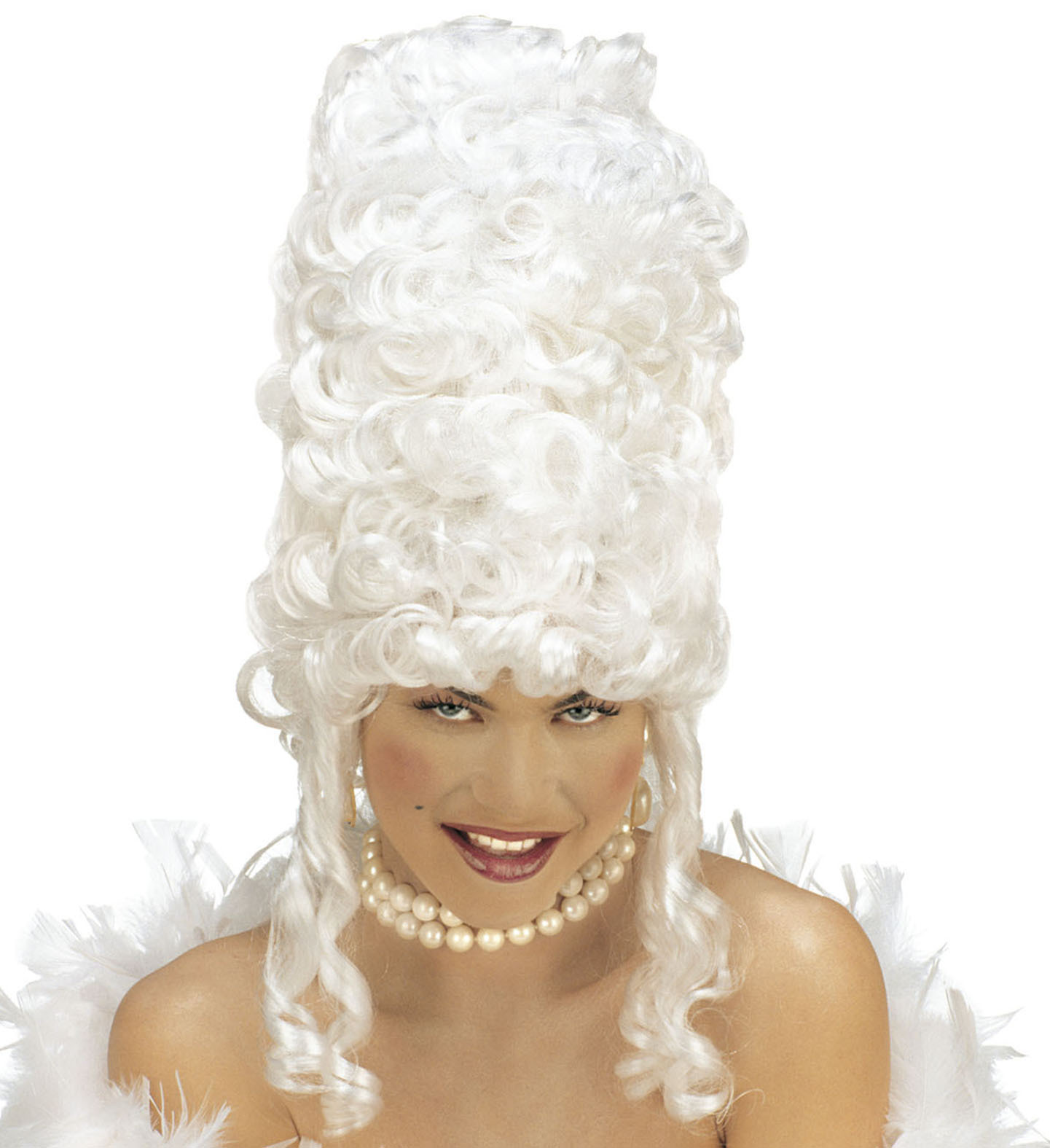 Paruka Marie Antoinetta, bílá, dobová. Barva: bílá Materiál: 100% polyester Určeno pro: dámská Typ paruky: vysoká s loknami przeczytaj całość
